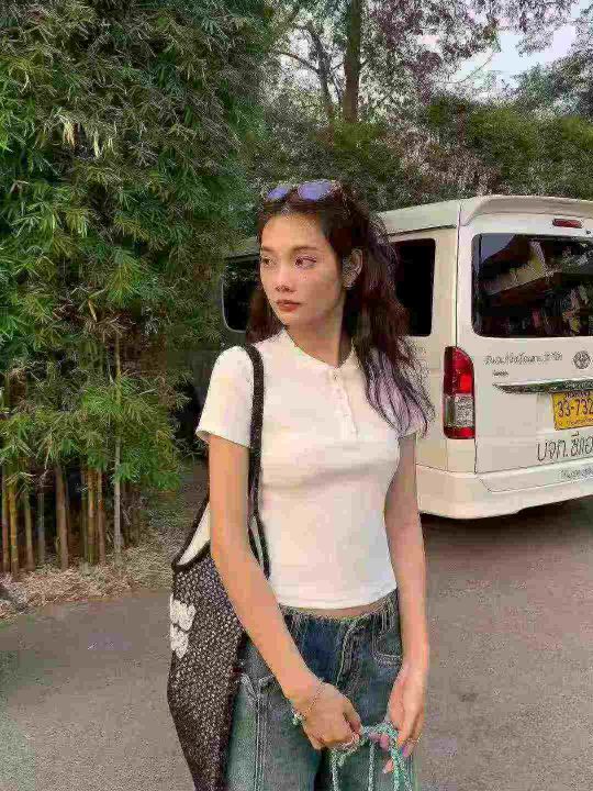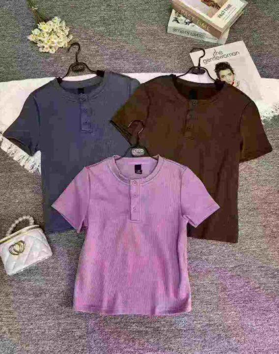 夏别致小圆领纽扣修身短袖t恤,整款多色,高弹力,领口有包边,面料厚实有质感,数量450件左右,码数xs-xl,全清5.9,分货+1
