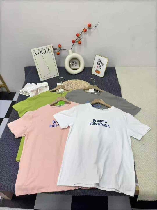 2025夏季新品100纯棉短袖果糖色密度220克t恤女学生宽松韩版靓妹女装短款上衣服,数量800件,码数s-2xl,后领包边,纯色有几十件,独立包装吊牌,可入超市商场地摊销售,全清7.8元,分货+0.5元