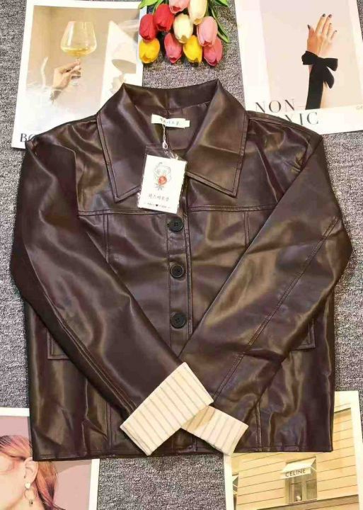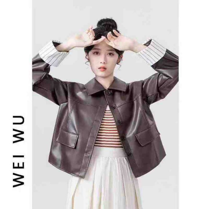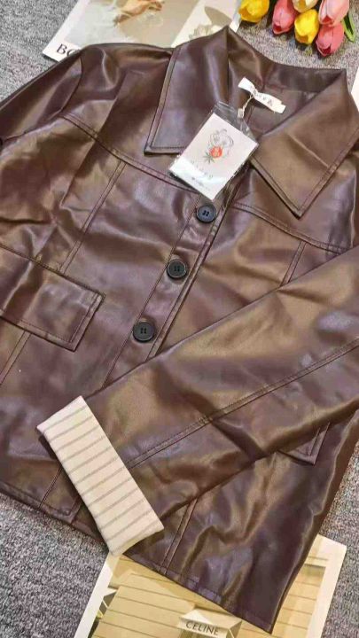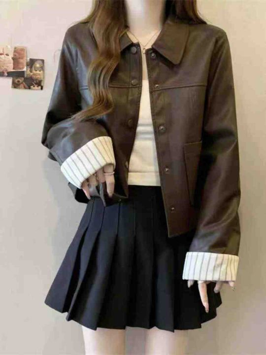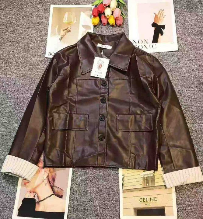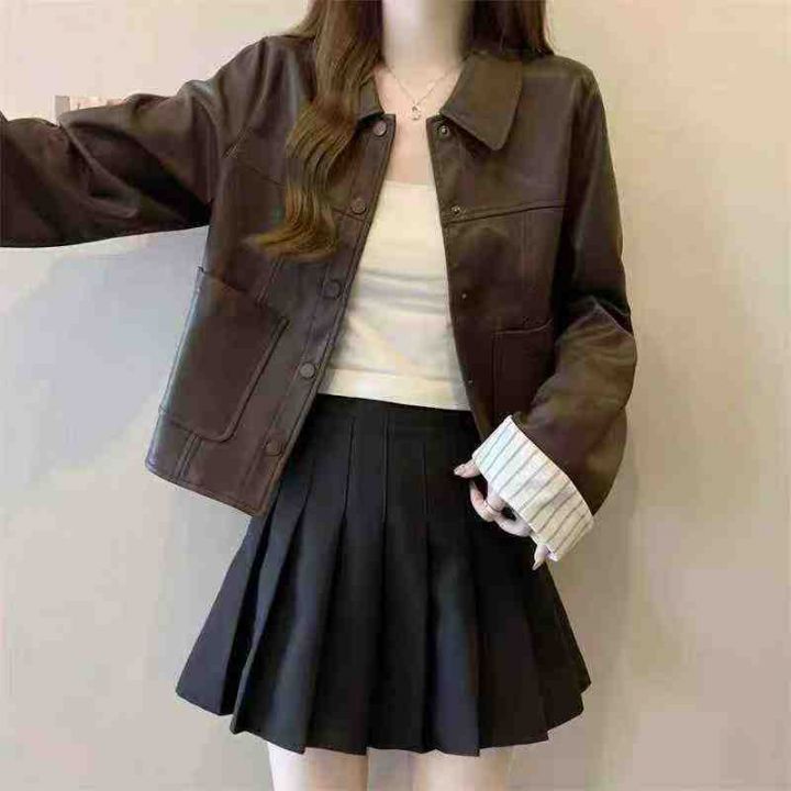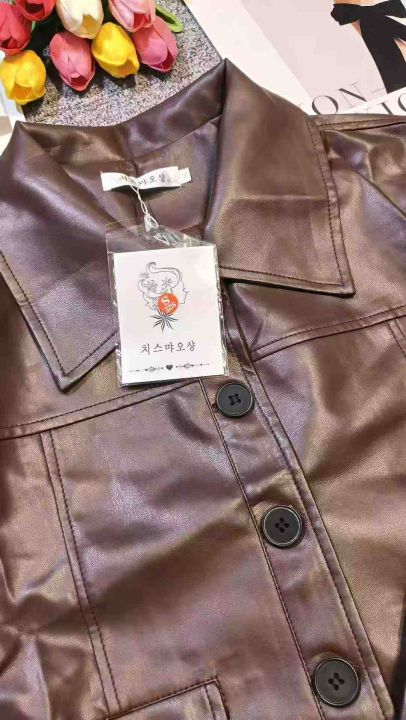 美拉德复古翻领PU皮显瘦百搭夹克皮衣,[爱心]25件左右,码数S-XL,穿80-130斤,万佳档口货,原包装️无瑕疵,[666]实体店品质