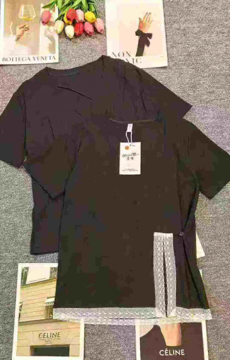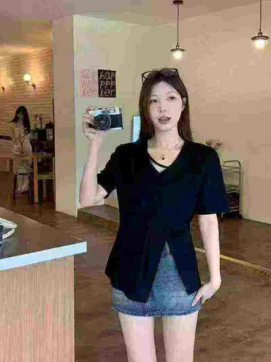 全清:1.8一件小众设计感蕾丝边开叉显瘦百搭T恤女,[...