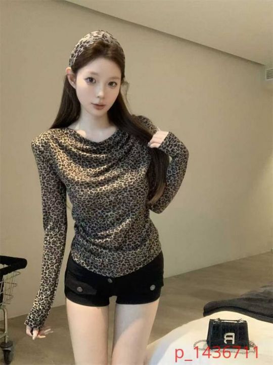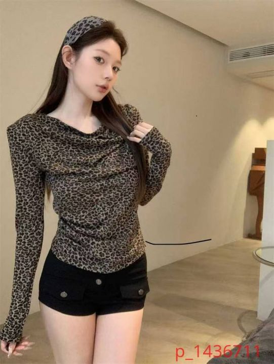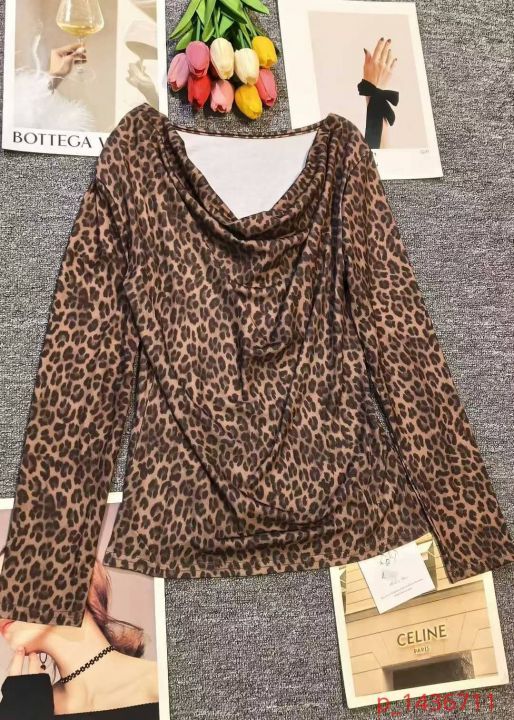 编号:[28168] ¥5.8元 女装/女士服装 上衣 衬衫/长袖小衫/设计感 设计感 复古豹纹上衣复古豹纹荡领设计感修身长袖80-140斤S-2XL原包装实体店品质款号#7163New retro leopard print swing neck slim long sleeve blouse, 5.8 each, complete clearanceبلوزة طويلة الأكمام ضيقة بتصميم رقبة متأرجحة وطبعة نمرية، 5.8 لكل قطعة، تصفية كاملة 库存:70件左右