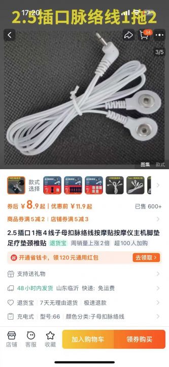 2.5插口1拖2线子母扣脉络线按摩贴按摩仪主机脚垫足疗线,几千条有没人要
