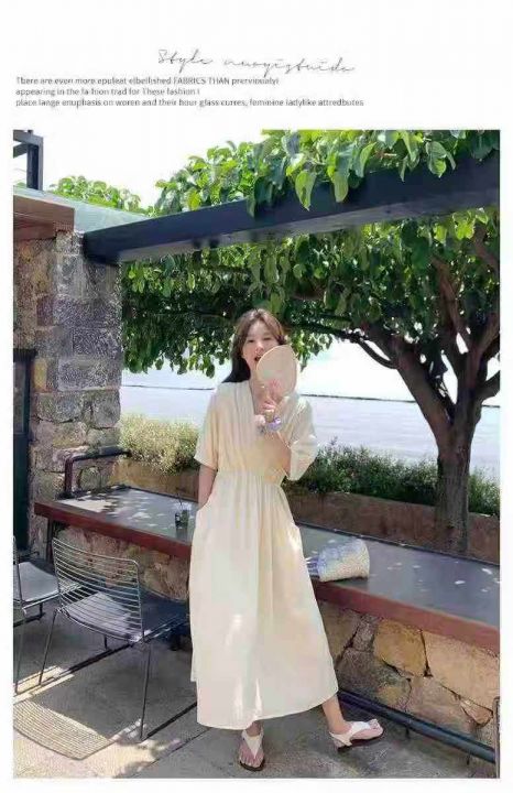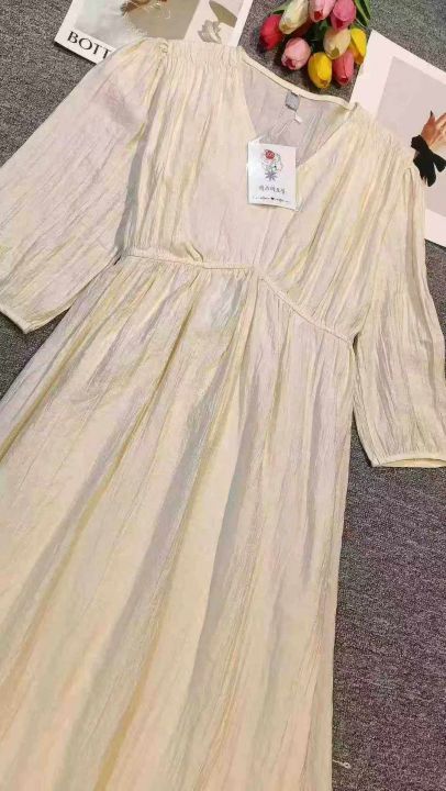 复古别致V领收腰显瘦杏色连衣裙,[爱心]50件左右,码数S-XL,穿80-130斤,万佳档口货,原包装️无瑕疵,(模特图仅供参考),[666]实体店品质