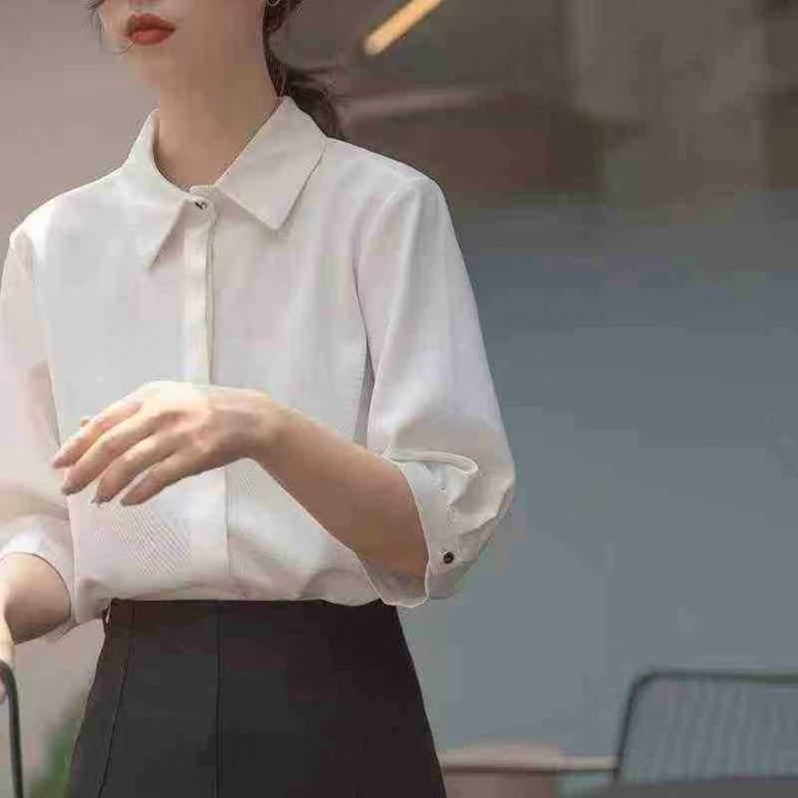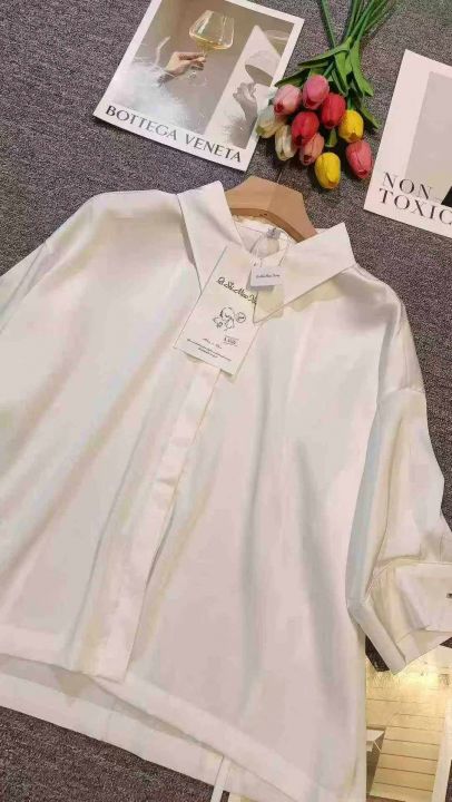 高级感纯色通勤轻奢清凉中袖白色衬衫,[爱心]45件左右,款号#8128,码数S-L,穿80-130斤,万佳档口货,原包装️无瑕疵,[666]实体店品质