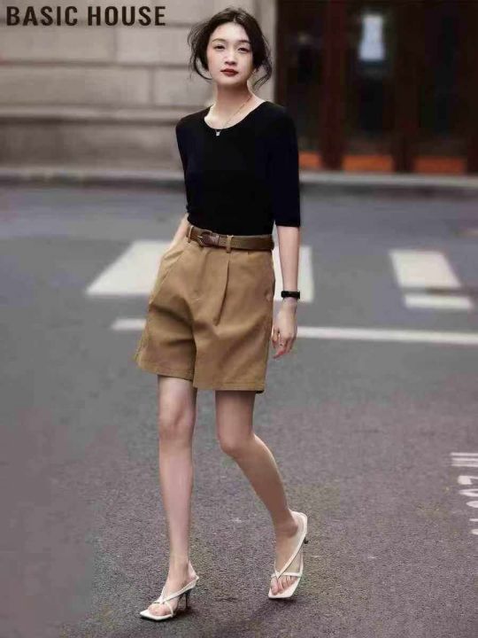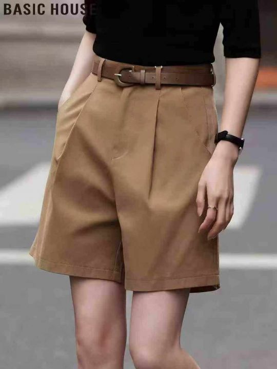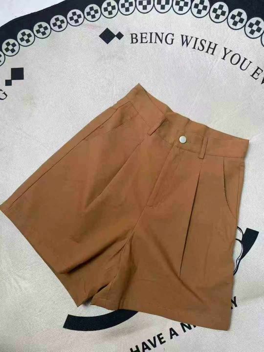 3.9清227件复咖色纯棉高腰西装短裤女款夏季三分阔腿裤...