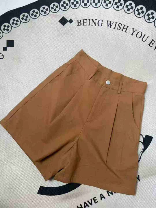 3.9清227件复咖色纯棉高腰西装短裤女款夏季三分阔腿裤 码数S-M 独立包装
