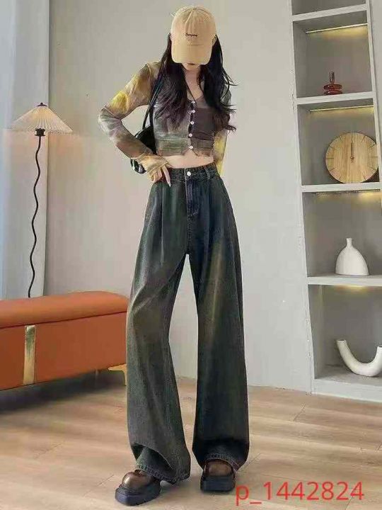 秋季新品洗水棉复古蓝阔腿牛仔裤,独立包装带吊牌,码...