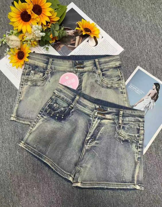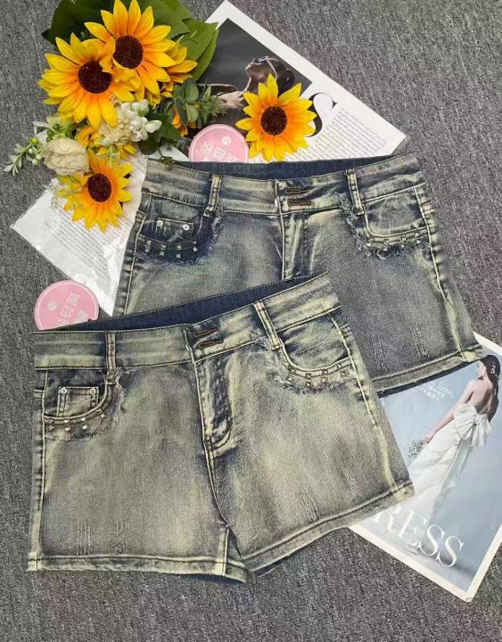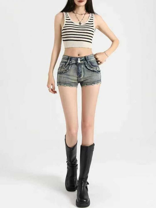 夏季新款辣妹性感纯欲风洗水棉牛仔短裤,独立包装带吊...