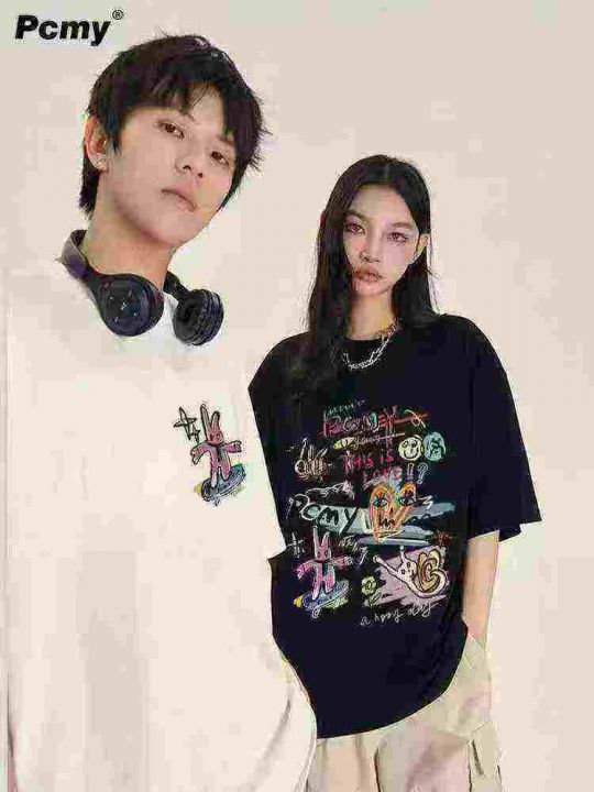 5.9清电商仓回收6294件潮牌男女同款印花宽松短袖T恤,码数XS-2XL码。后领包...