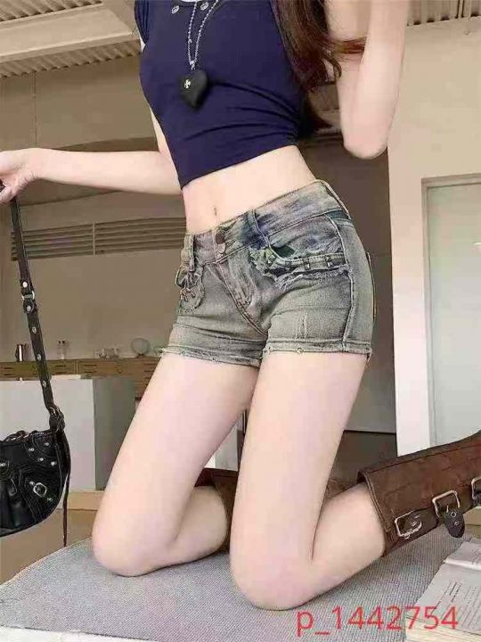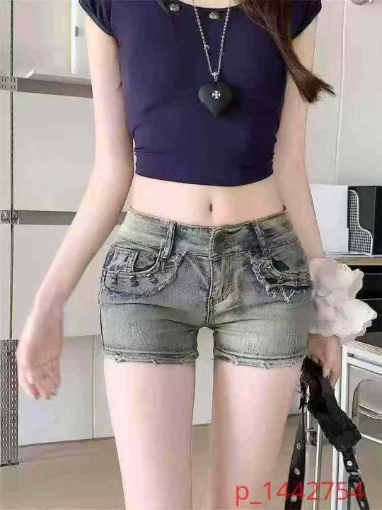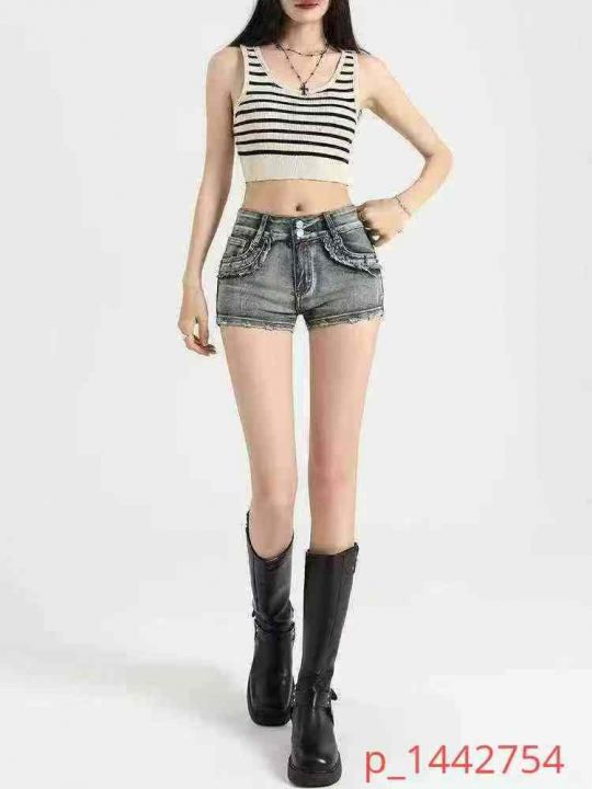 夏季新款辣妹性感纯欲风洗水棉牛仔短裤,独立包装带吊...