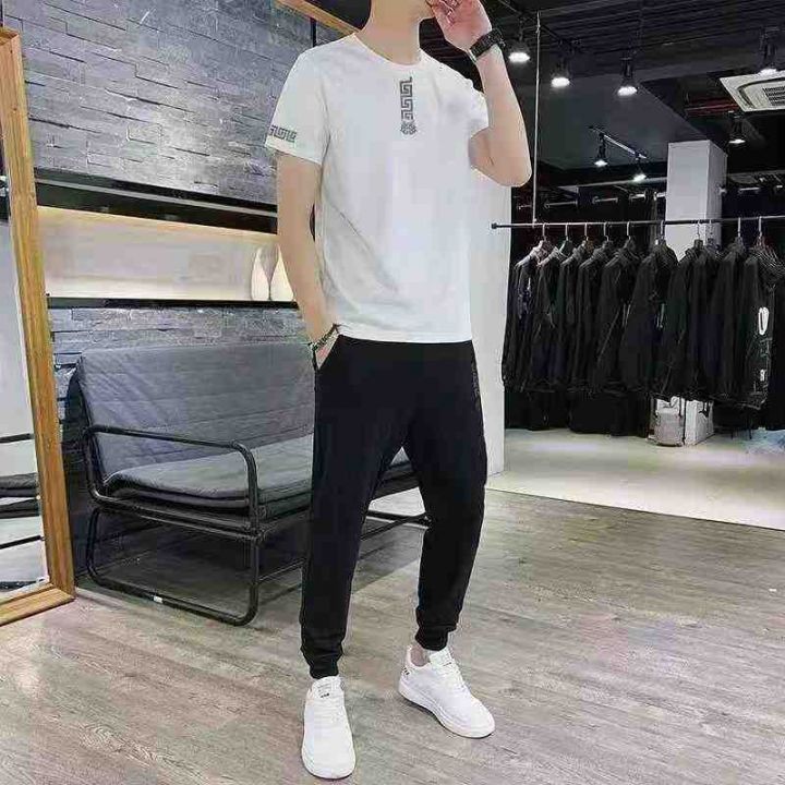 上新全清:8.8一套简约通勤百搭宽松休闲短袖配长裤套...