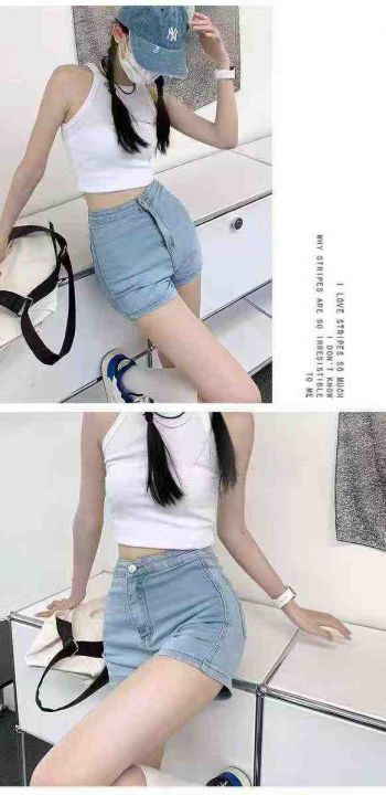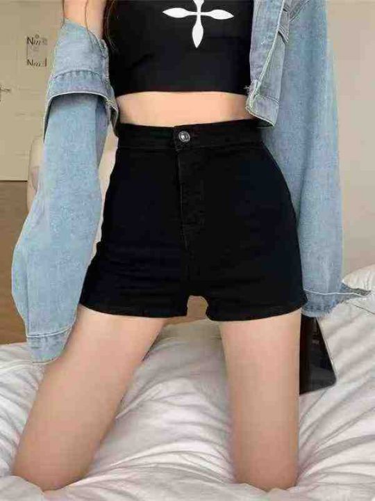夏季新款高腰辣妹性感弹力显瘦洗水棉牛仔短裤,独立包...
