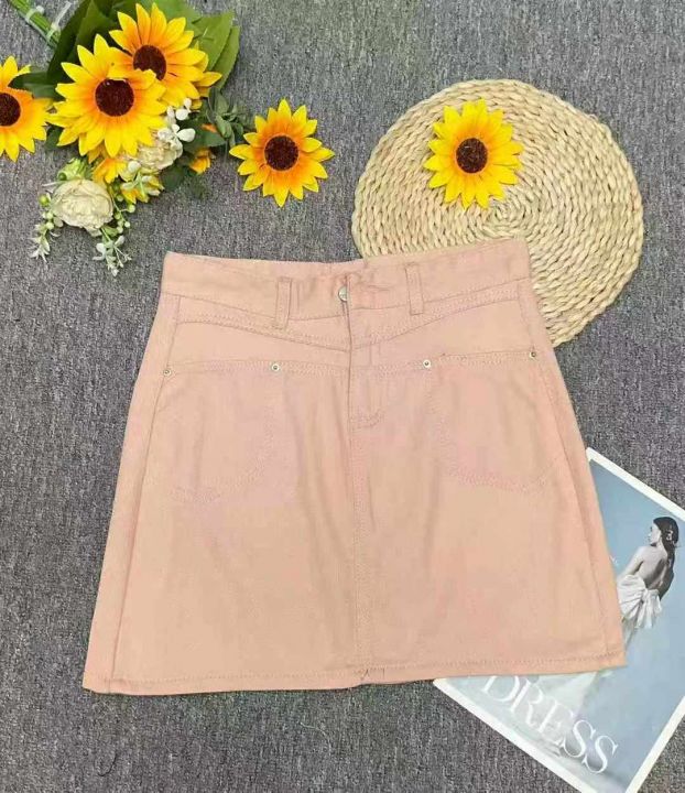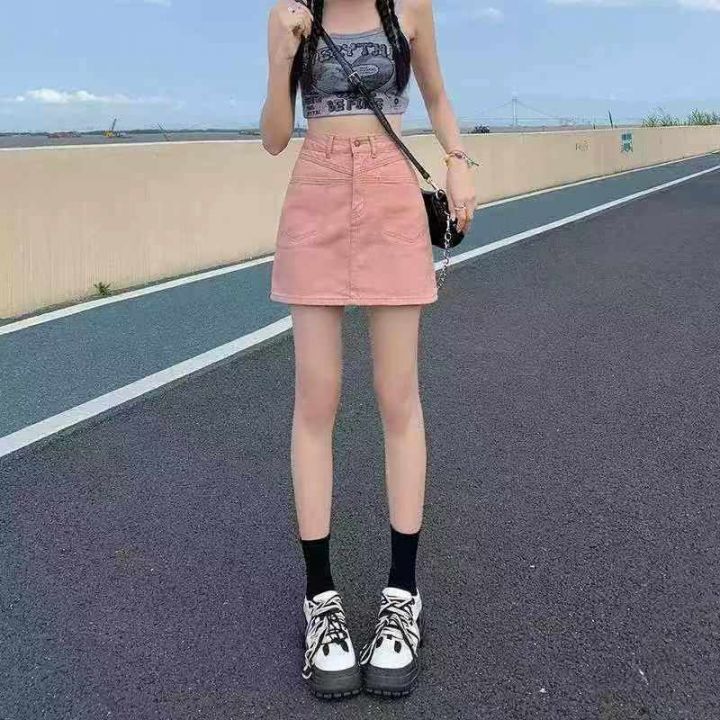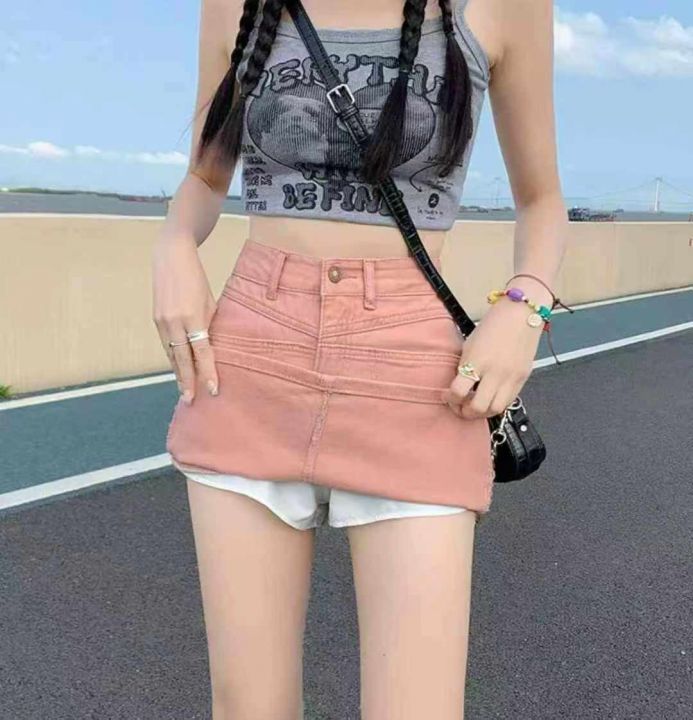 夏季新款脏粉色辣妹显瘦洗水棉牛仔短裙,独立包装带吊...
