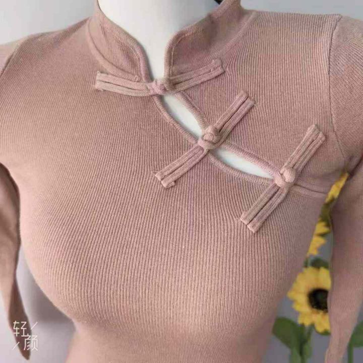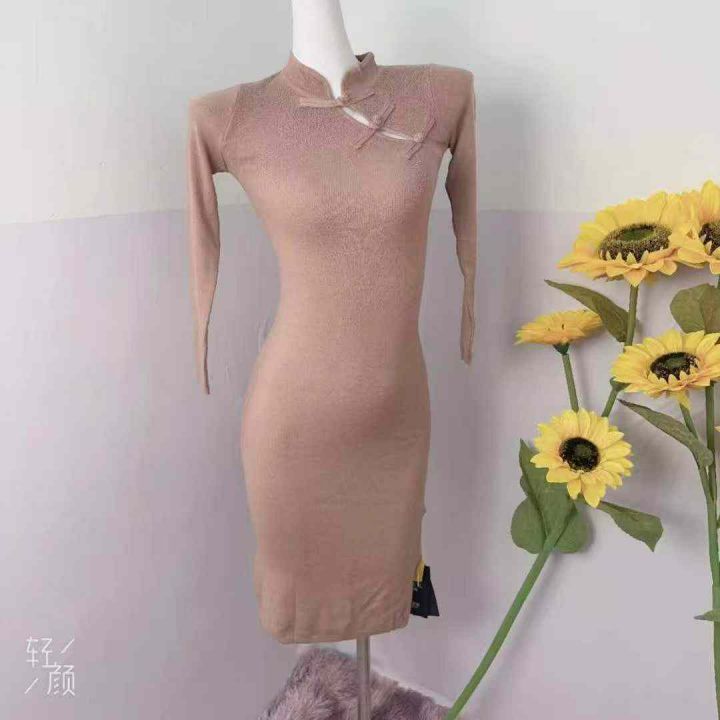 新中式国风盘扣旗袍毛衣连衣裙,女包臀开叉长裙,码数...