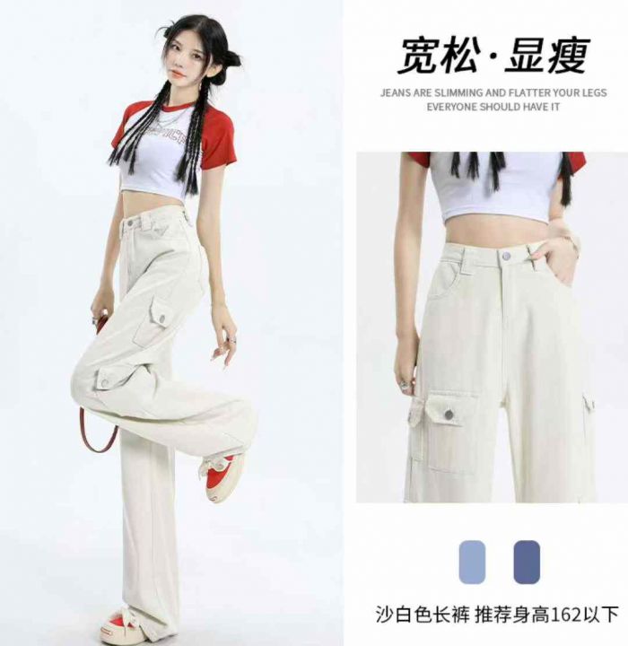 高品质女装多口袋工装牛仔直筒阔腿裤,独立包装带吊牌...