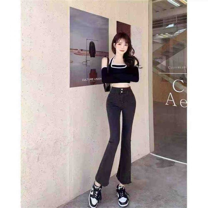 早秋季新品高弹力女装洗水棉毛边微喇叭牛仔裤,独立包装带腰卡,码数S-2XL码,1150件,全清9.9元超低价秒杀!分货加一!