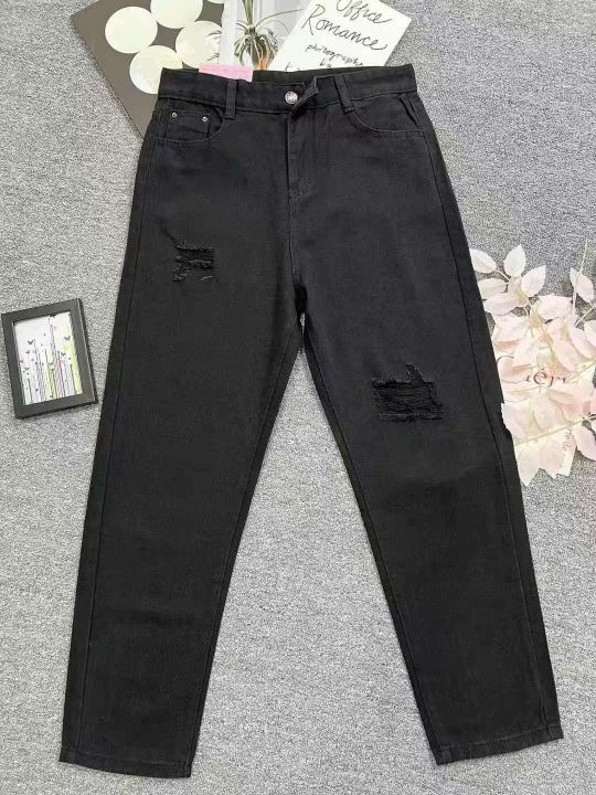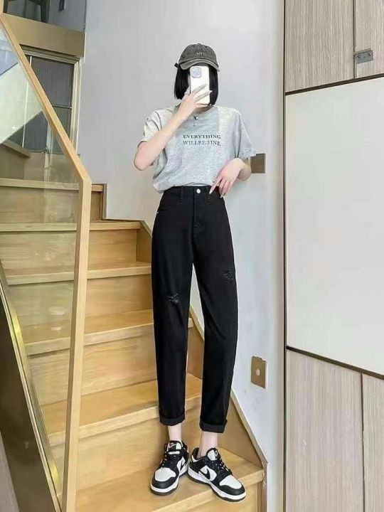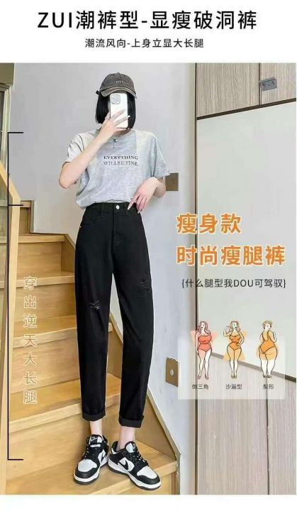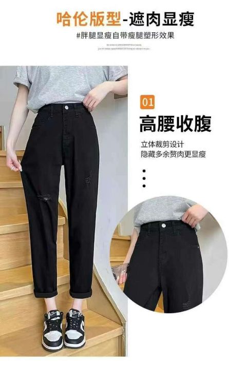 破洞牛仔老爹裤☕️140条全清9.9元,码数S到3xl,独立包装、夏季破洞牛仔裤女直筒高腰显瘦梨形身材大码哈伦老爹胖mm裤子