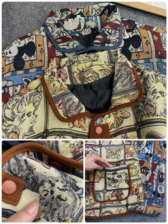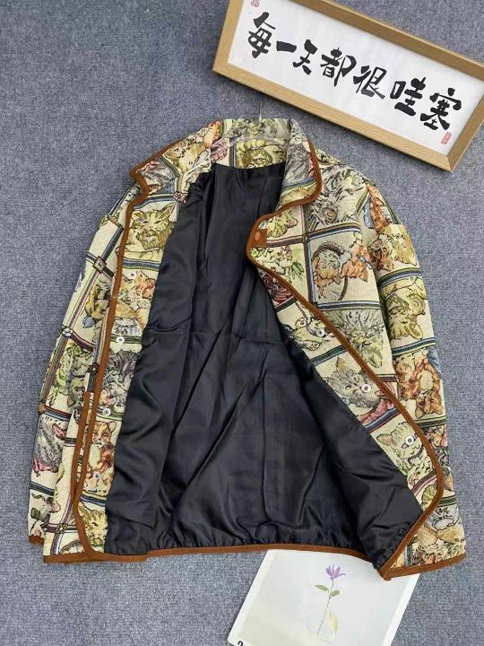复古猫咪提花夹克外套73件13.8,有内衬,双口袋,百搭...
