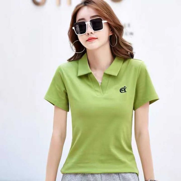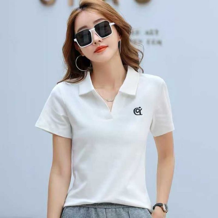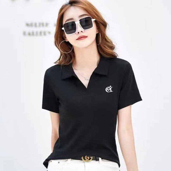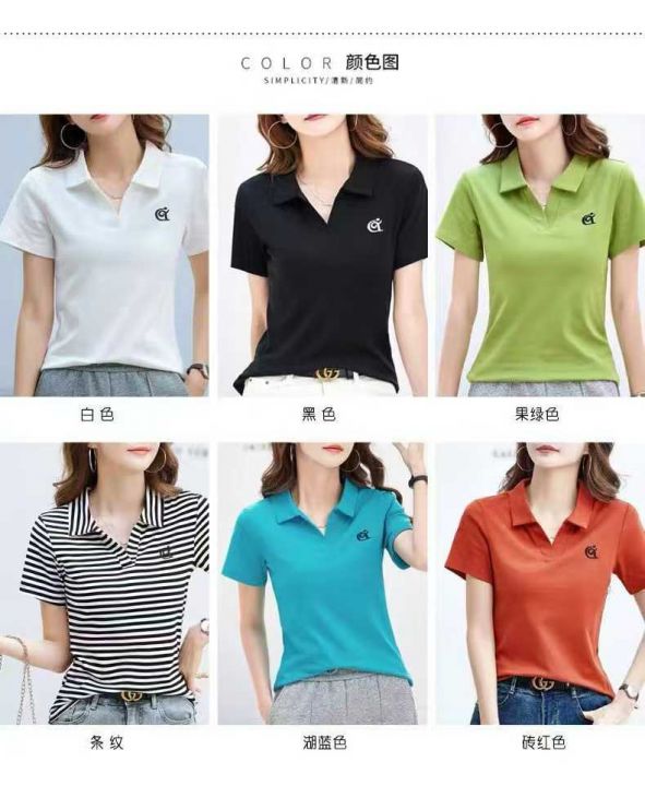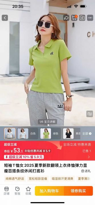 780件短袖T恤女2025夏季新款翻领上衣体恤弹力显瘦百搭...