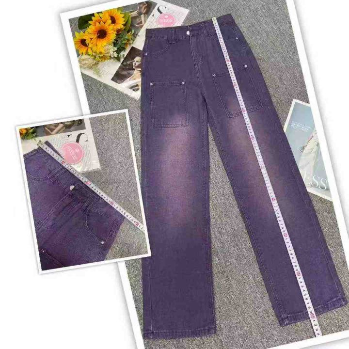 秋季新品洗水棉美式复古紫色宽松显瘦垂感直筒阔腿牛仔裤,独立包装带吊牌,码数S- 2XL码, 312件, 全清9.9元超低价秒杀!分货加一!