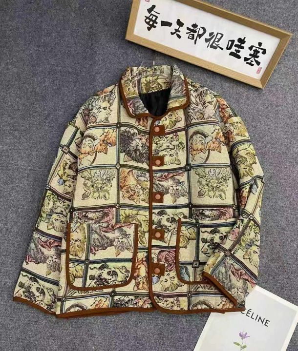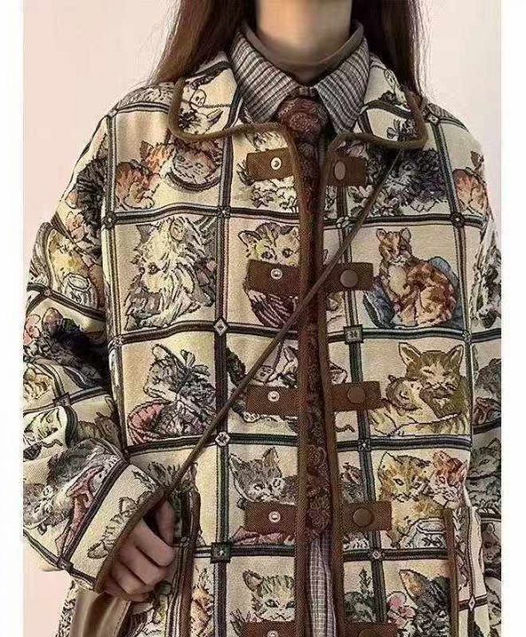 复古猫咪提花夹克外套73件13.8,有内衬,双口袋,百搭...
