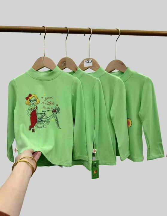 亏本清仓644件儿童半高领印花长袖打底外穿上衣,面料...