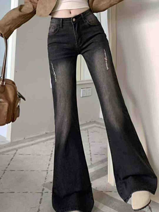 秋季新品洗水棉高弹力复古微喇叭牛仔裤,独立包装带吊...