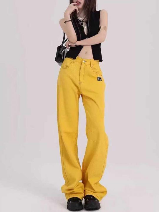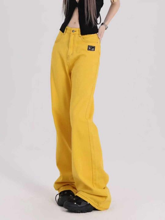 秋季新品美式复古黄刺绣标宽松休闲设计感百搭牛仔直筒...