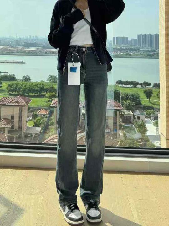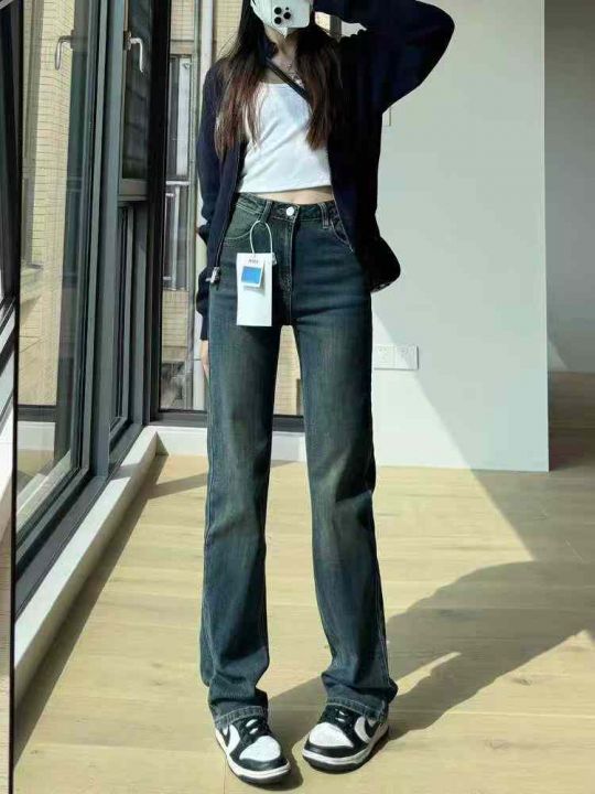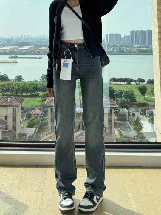 秋季新款高弹力高腰显瘦复古窄版直筒牛仔烟管裤,独立...