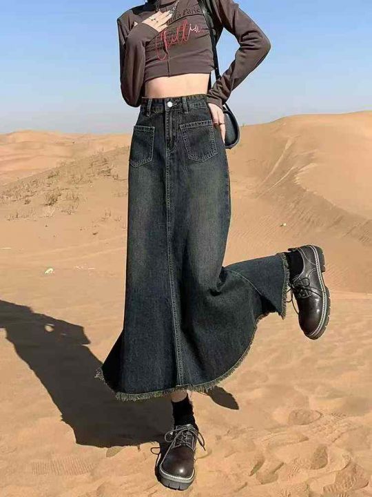秋季新品洗水棉网红爆款半身牛仔长裙,图片款,独立包...