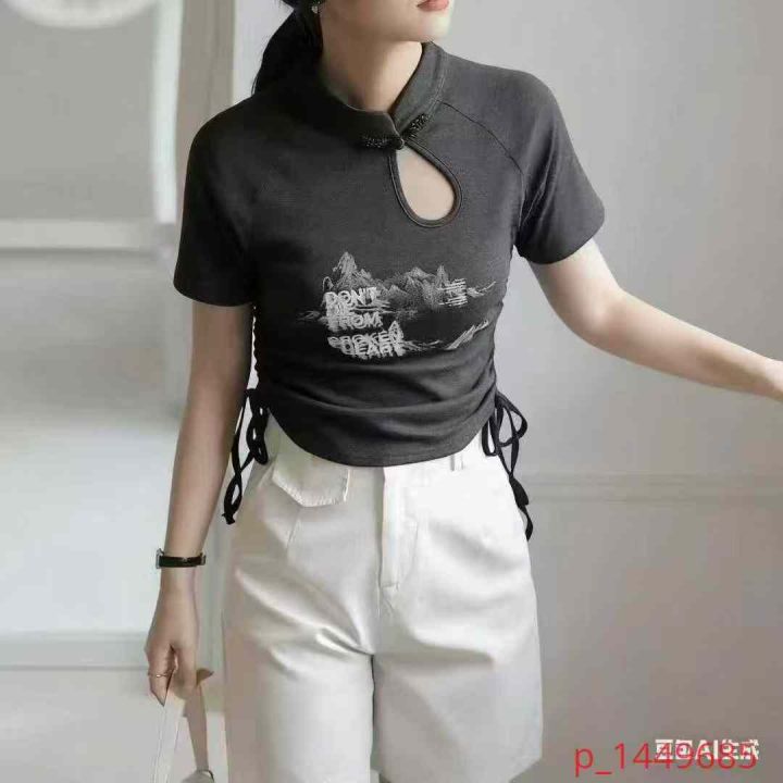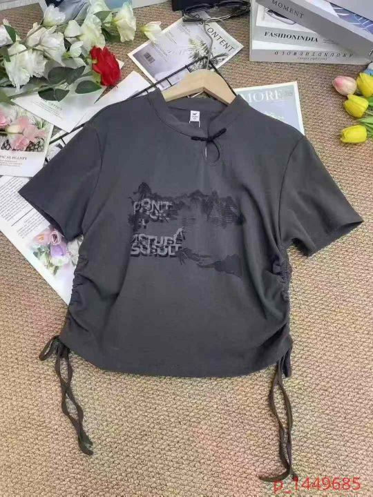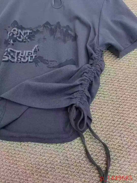 [月亮]:7.5清177件(不分货)[月亮]:纯欲系带不规则袖口辣妹长袖上衣[月...