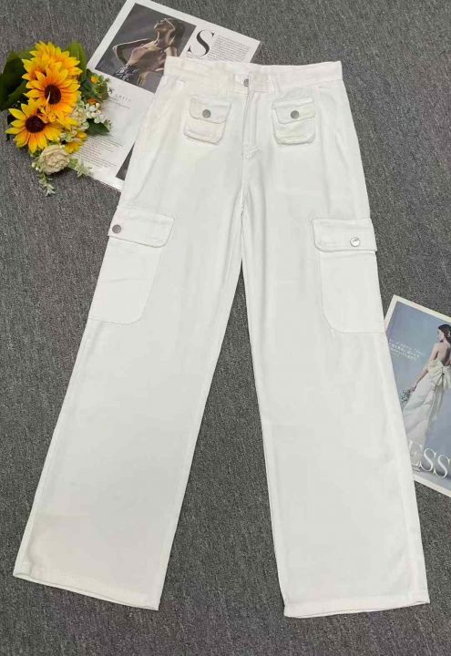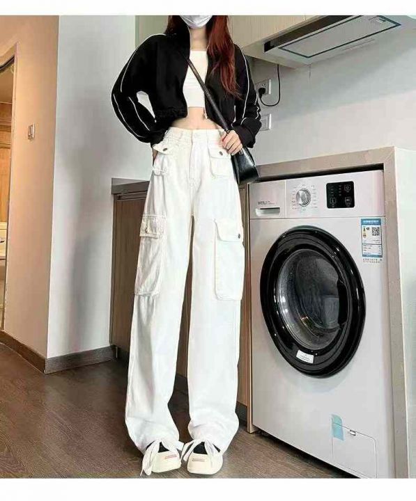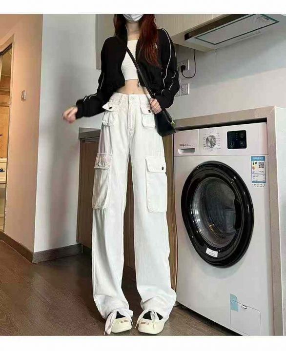 秋季新品洗水棉多袋工装牛仔阔腿裤,独立包装带吊牌,...