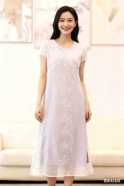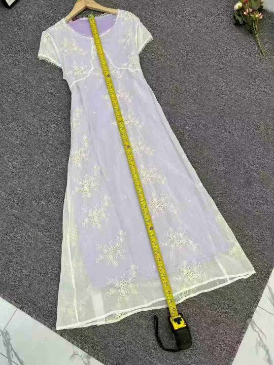 4600件高品质盛夏气质收腰显瘦修身长款连衣裙,工艺绣花,单款单色,独立包装,码数M-L。