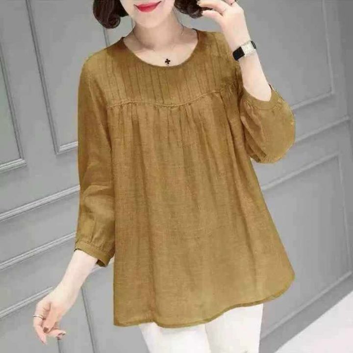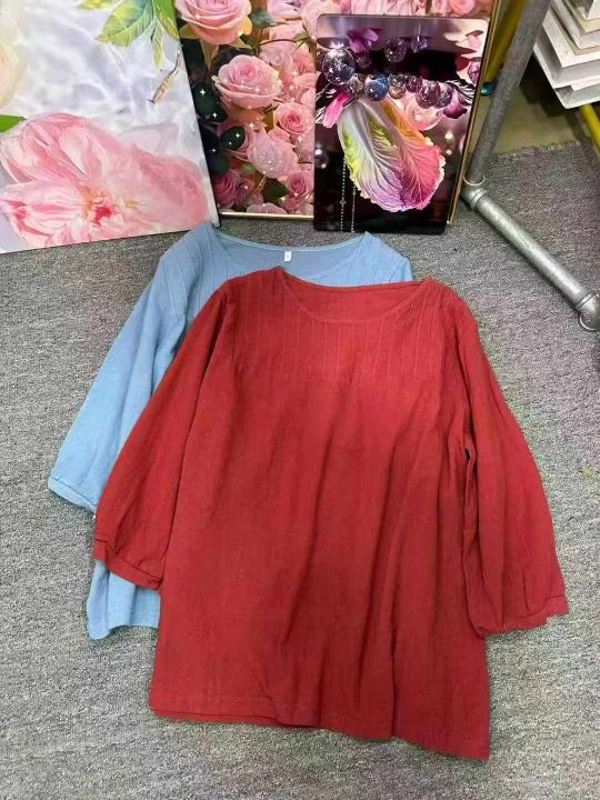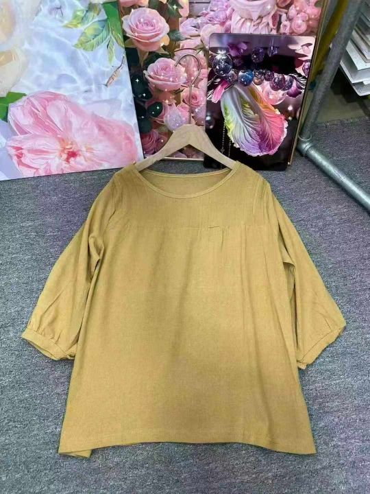 春夏文艺棉麻t恤女式九分袖宽松娃娃衫上衣中年套头亚麻衬衫大码,整款4色,只剩黄色了,其他色没有了,M-2xL码,独立包装,货品干净,最后270件,4.8清,分货加1
