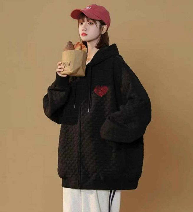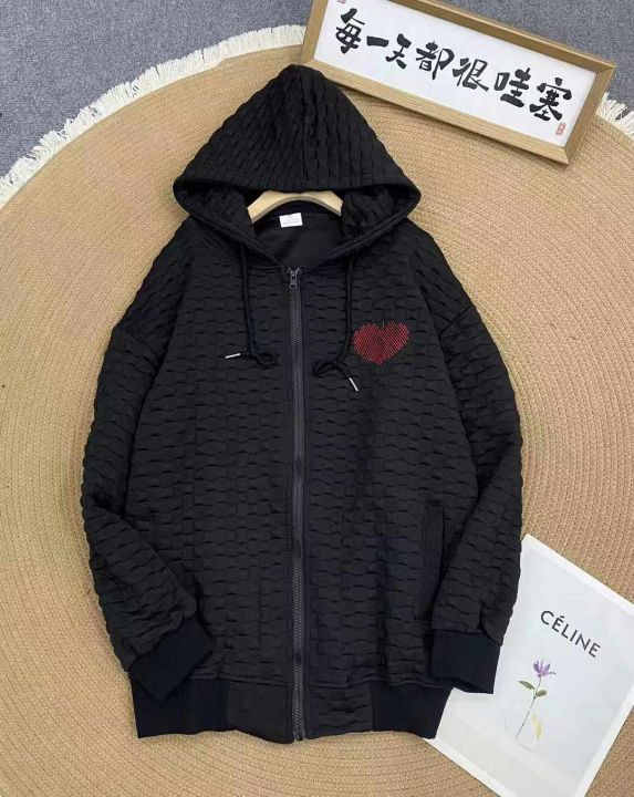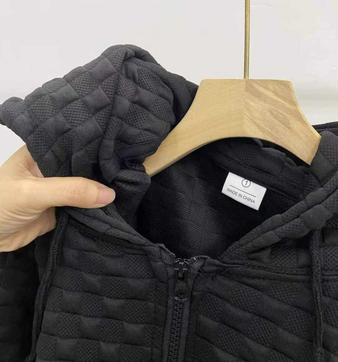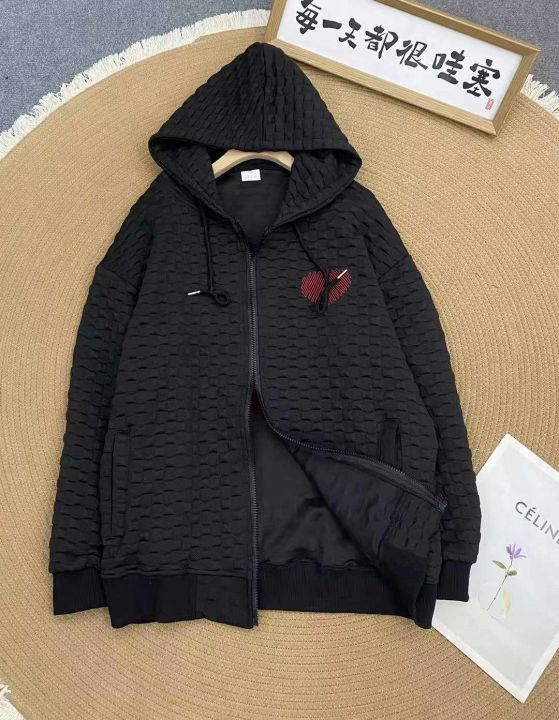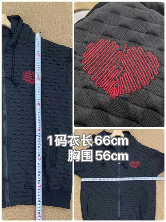 情侣款华夫格连帽外套104件11.8,前后图案刺绣,有口...