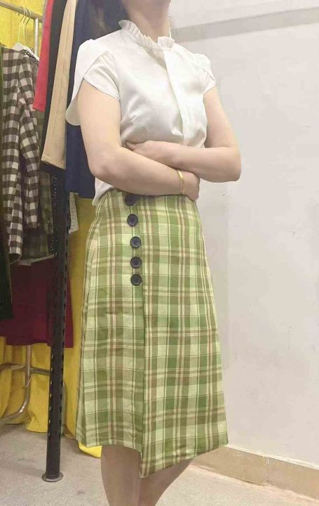 新款韩版时尚百搭网格长款A字裙190件,码数S-4XL,独...