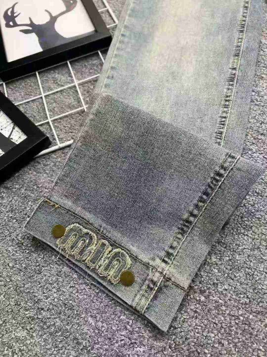 ☕️高弹力烟管牛仔裤女刺绣miu字母图案窄版弹力修身九分裤210条全清12.8元,码数S到XL ,正品独立包装[庆祝][庆祝][庆祝]