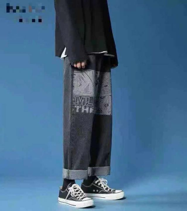 天猫在售款450件左右高品质男装潮牌个性涂鸦加绒加厚松紧腰阔腿牛仔裤,内里加黄金绒,单款单色,S-3XL,独立包装带吊牌