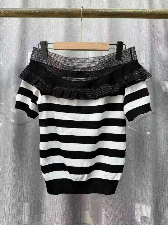 夏季新品时尚一字领套头短袖针织衫性感露肩休闲女装气...