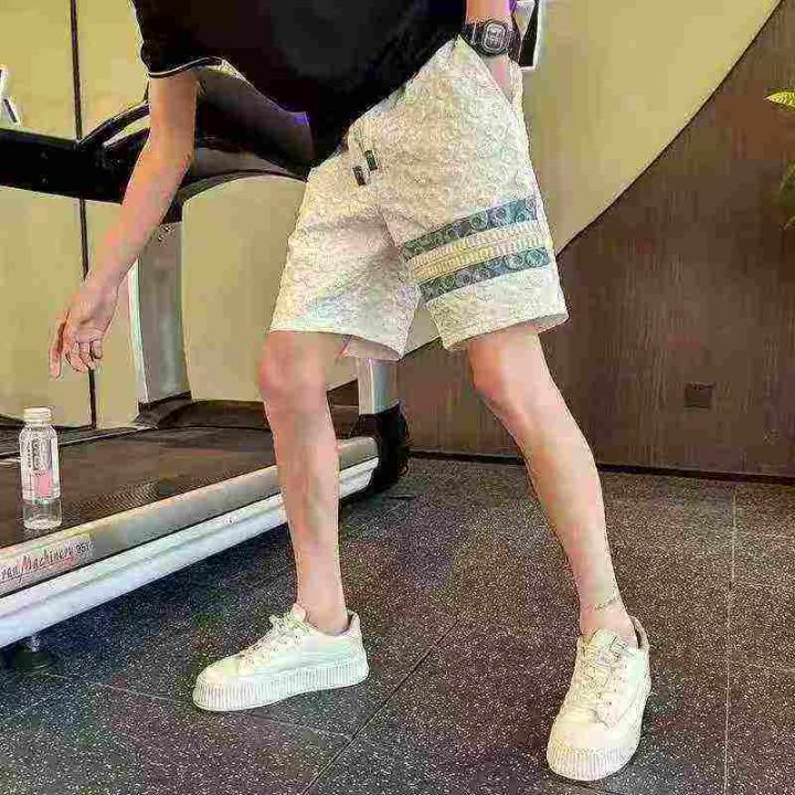 1072件痞帅高级感男士休闲宽松夏季薄款提花中裤五分裤!单款两色~黑~白!