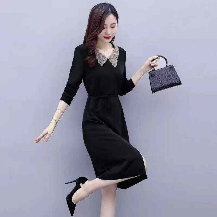 轻奢名媛醋酸长袖连衣裙秋季新款轻熟风气质收腰显瘦减龄裙子