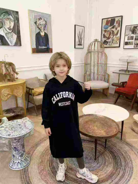 外贸长款童装印花连帽卫衣 数量300件左右 尺码110--160 整款单色 面料图9 独立包装 大货干净整洁