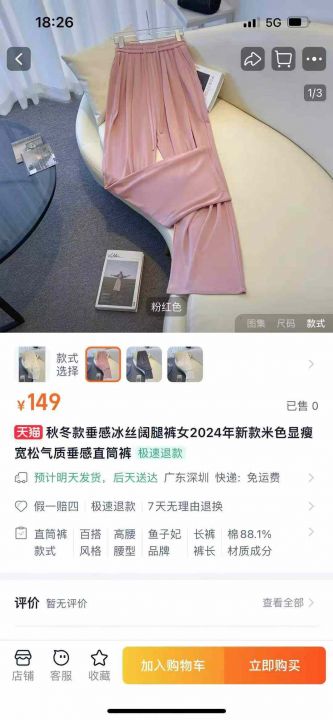 天猫精选1100条 在售款,阔腿休闲高腰垂感十足冰丝裤...