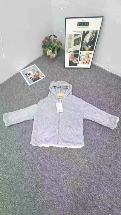 儿童拉链毛绒连帽外套,有口袋,独立包装带吊牌,大货图9两个颜色为主,有几件个别的颜色,码数110-160。