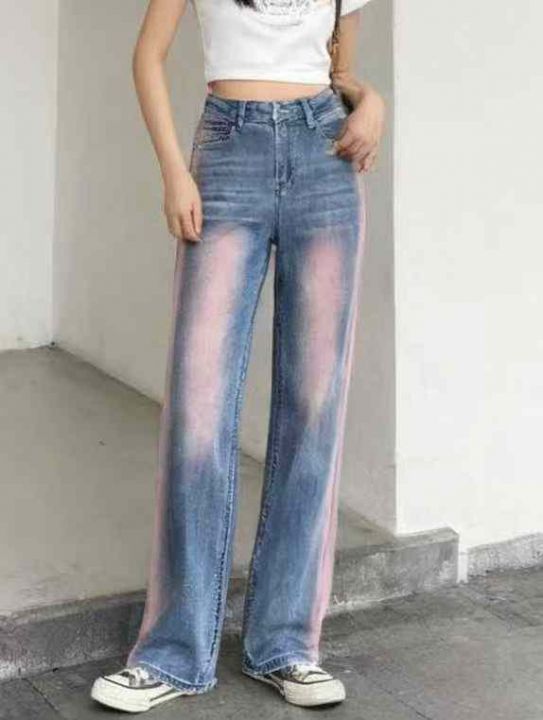 秋季新品高弹力个性甜美风时尚潮流穿搭减龄洋气直筒阔腿牛仔裤,独立包带吊牌,码数M-XL码,150件,全清9.9元超低价秒杀