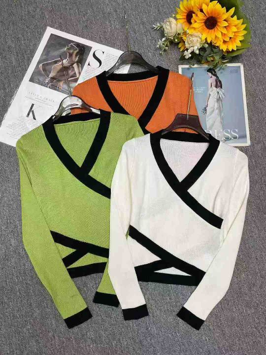 早秋季新款洋气交叉辣妹设计感小众长袖针织套头毛衣,独立包装,均码面料柔软舒适弹力大,940件,全清5.9元超低价秒杀!分货加一!