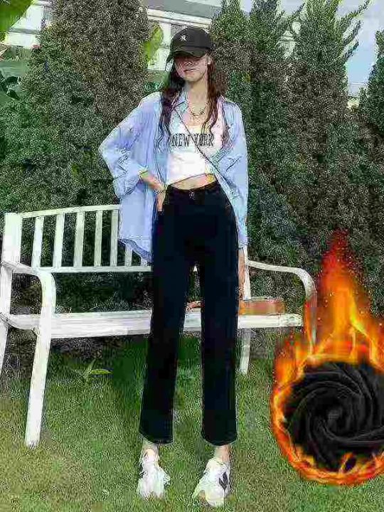 捡漏全清:5.8一件黑色高腰直筒显瘦九分加绒烟管牛仔...