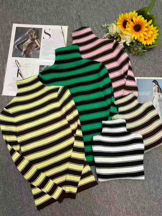冬季新款堆堆领撞色条纹针织套头毛衣,独立包装,均码面料软糯厚实弹力大,160件,全清7.9元超低价秒杀!
