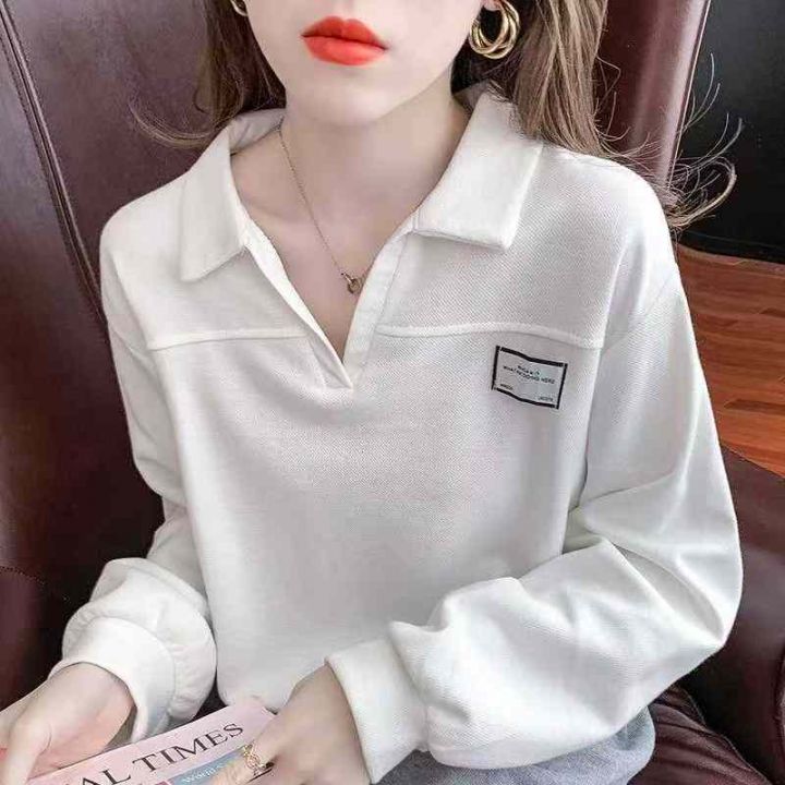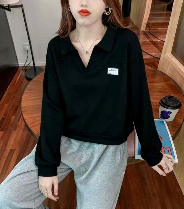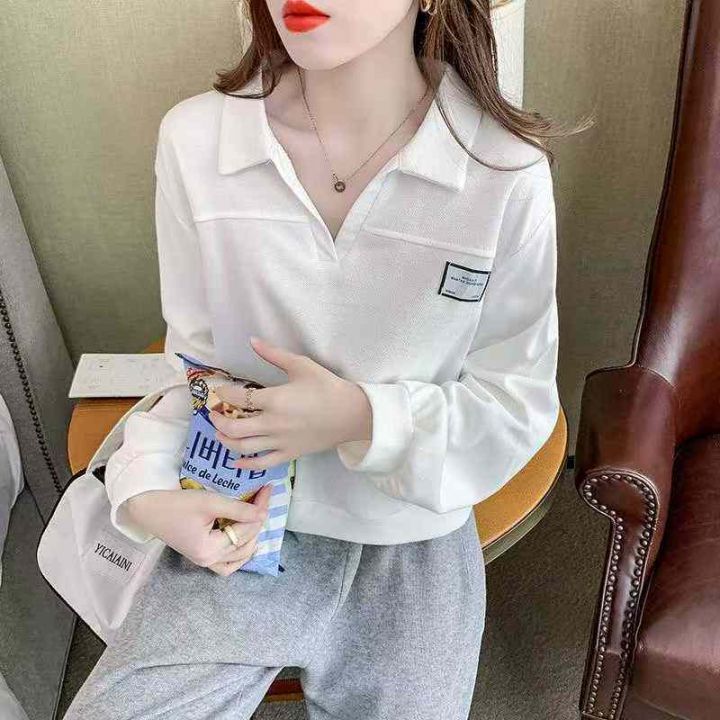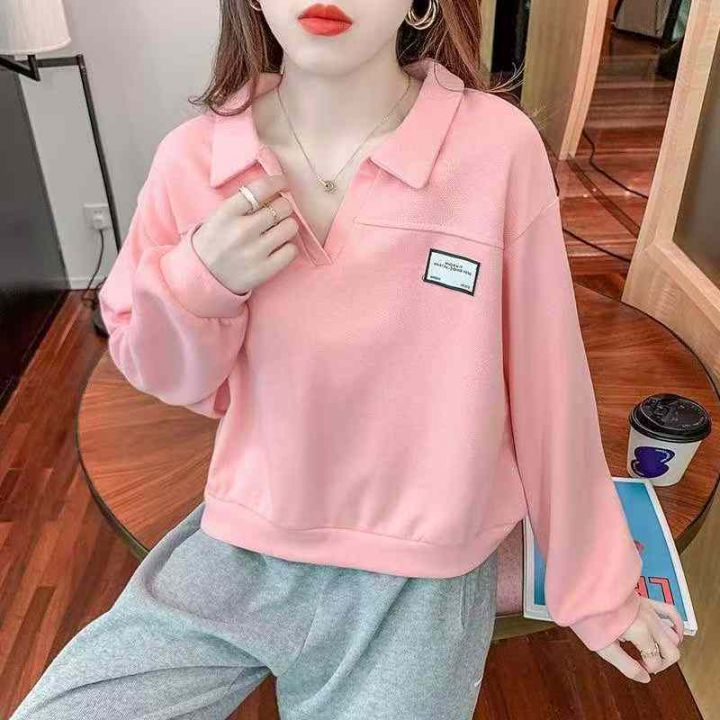 秋季新品韩版宽松设计感polo领长袖针织套头毛衣,独立...