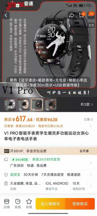 音速高端智能手表250pcs维亿魄方案,TFT的AF高清屏幕...